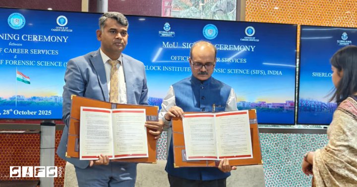 A new academic partnership has been formed to boost research, innovation, and skill development in forensic science. Sherlock Institute of Forensic Science (SIFS) India and Cagayan State University, Philippines, joined hands through an MoU to promote global learning and practical collaboration. [18.10.2025]